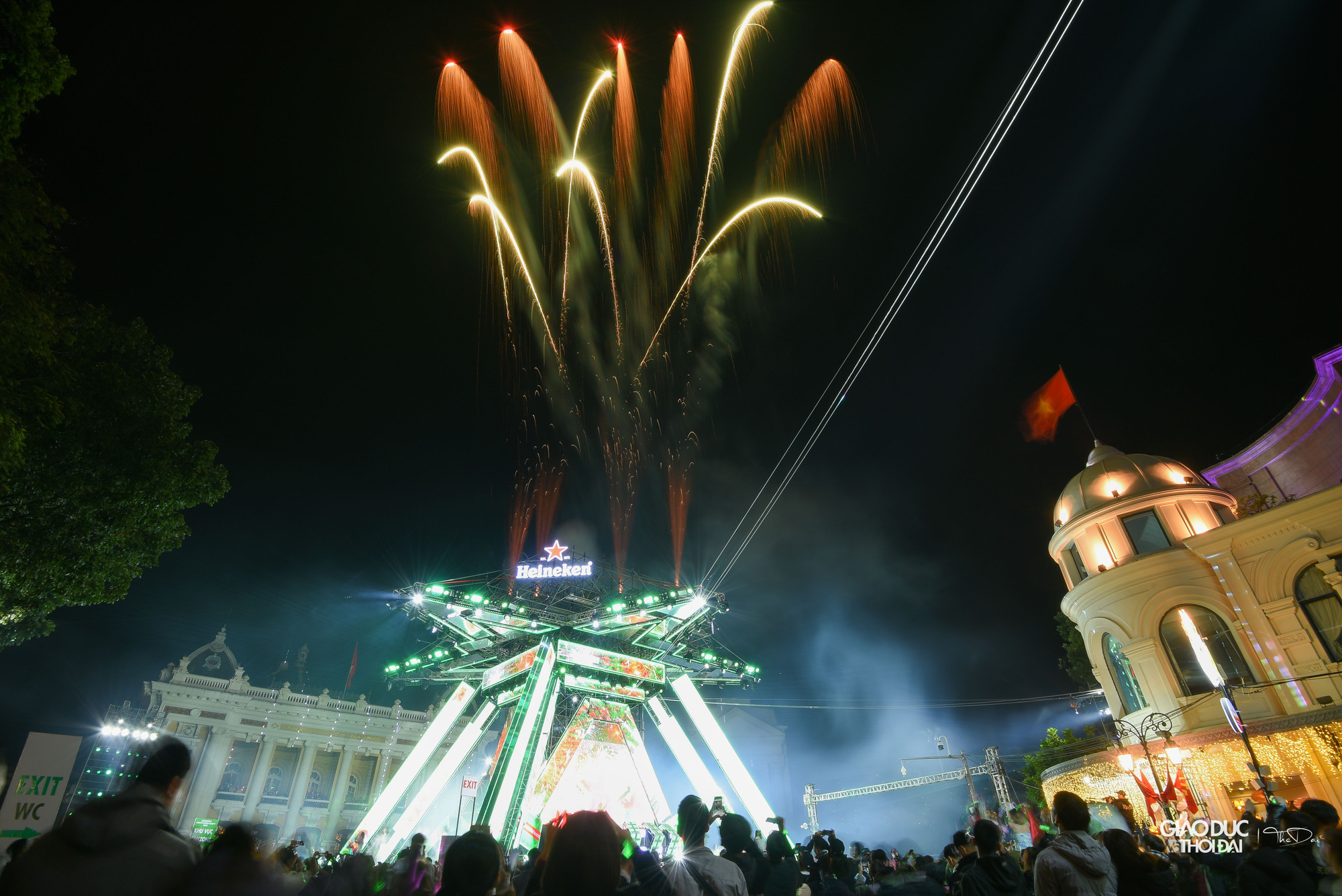 | Sau những giây phút sôi động cùng âm nhạc điện tử, người dân Hà Nội cùng nhau đến với khoảnh khắc đón năm mới bằng màn pháo hoa đầy màu sắc. |