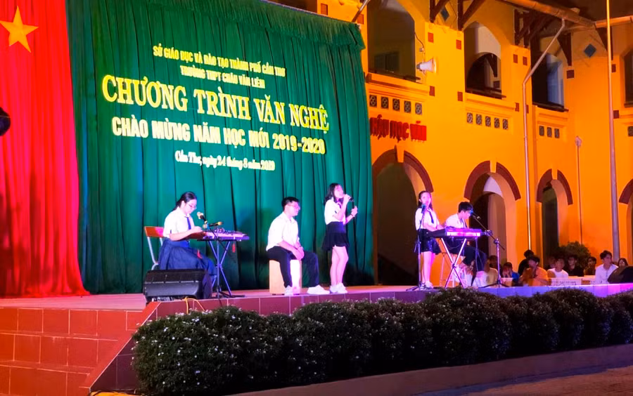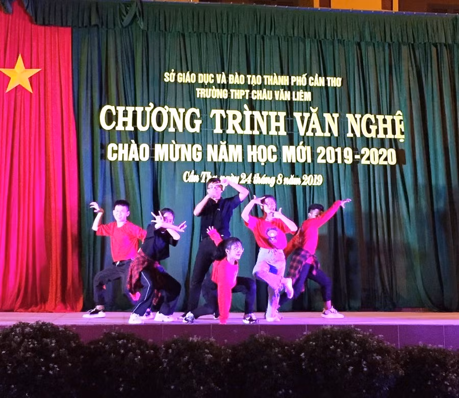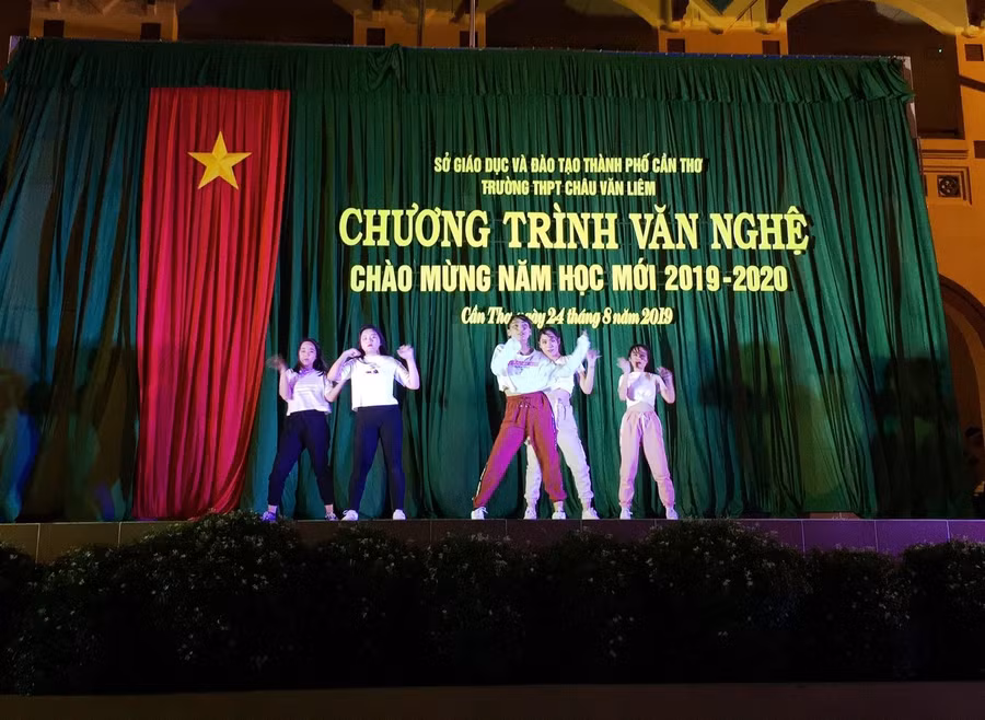 Chương trình văn nghệ ngoài những tiết mục ca ngợi tuổi học trò, tình yêu quê hương, đất nước thì các diễn viên cấp THPT còn có những tiết mục hiện đại, sôi nổi.
