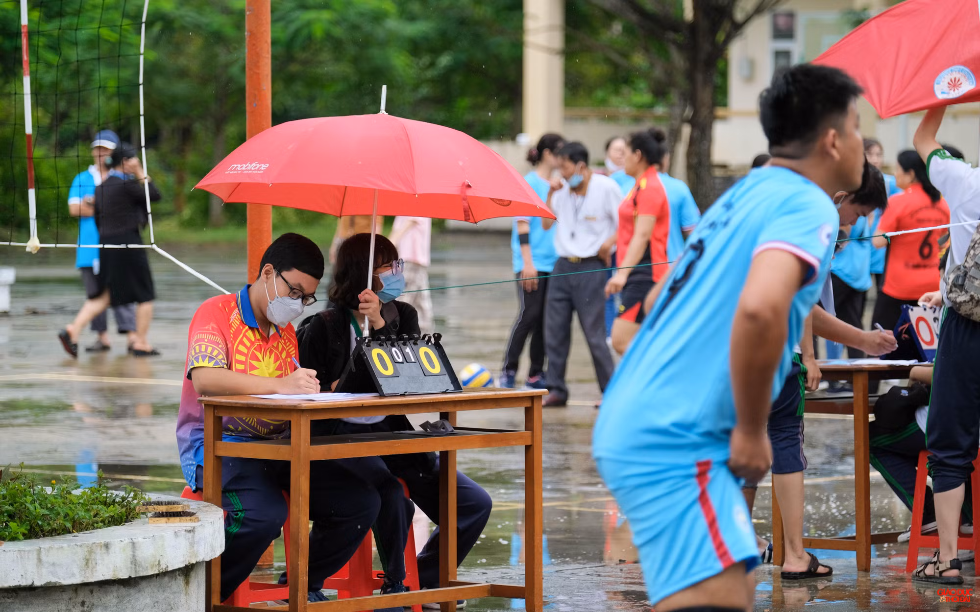 | Mặc dù hội thao diễn ra lúc trời mưa nhẹ, nhưng các vận động viên rất sôi nổi và nhiệt tình tham gia thi đấu. |