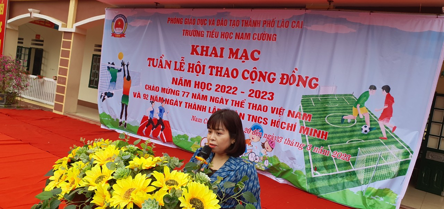 Phát biểu Khai mạc tuần lễ, cô Đoàn Thị Duyến, Bí thư chi bộ, Hiệu trưởng nhà trường đã quán triệt mục đích, ý nghĩa của việc tổ chức Tuần lễ Hội thao cộng đồng. Đồng thời động viên, khích lệ tinh thần tham gia tập luyện, chuẩn bị thi đấu của các thầy cô giáo, cha mẹ học sinh và các em học sinh toàn trường.