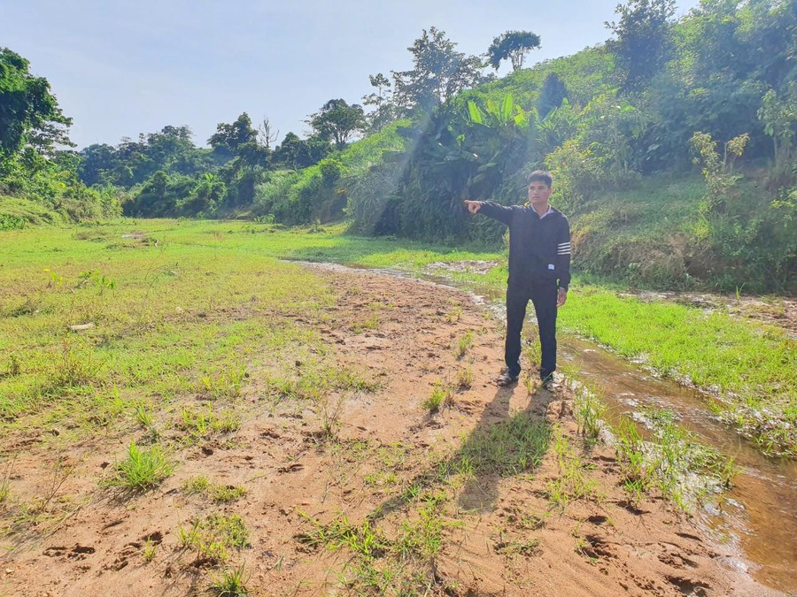 Anh Thọ cho biết, sau khi dự án điện gió của Công ty TNHH MTV Tài Tâm Quảng Trị dựng các trụ điện phía trên cao và không gia cố các bãi thải, cuối năm 2021, toàn bộ diện tích khoảng 5 sào ruộng lúa của gia đình anh tại khu vực suối KRiêng bị bồi lấp hết. Đáng nói, ở khu vực này không chỉ có ruộng của gia đình anh Thọ bị bồi lấp, mà còn hàng chục ô ruộng của người dân trong xã cũng bị xóa sổ, không thể canh tác.