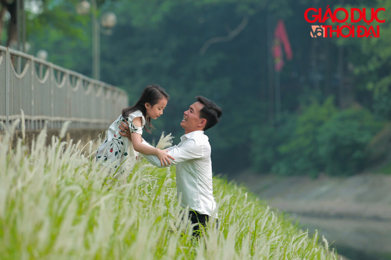 | “Thảm” cỏ lau được một số gia đình chụp lại những tấm ảnh kỷ niệm. |