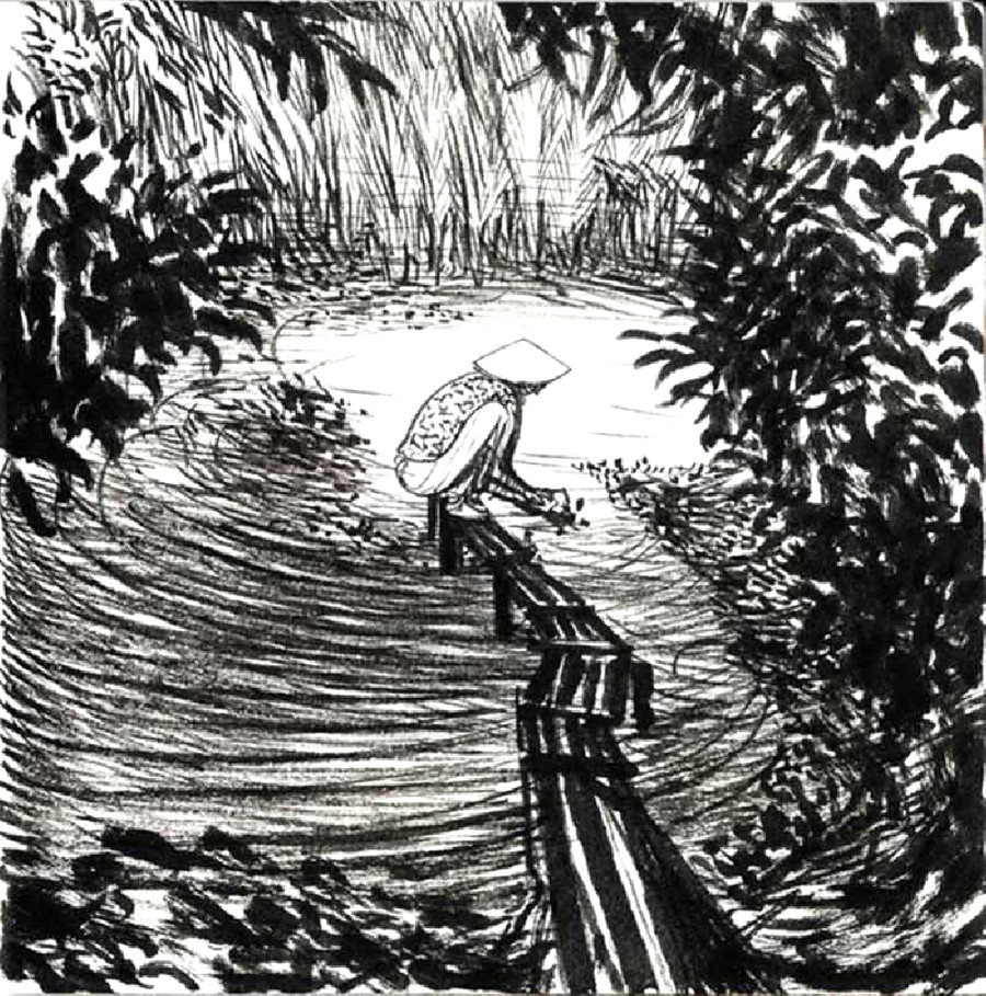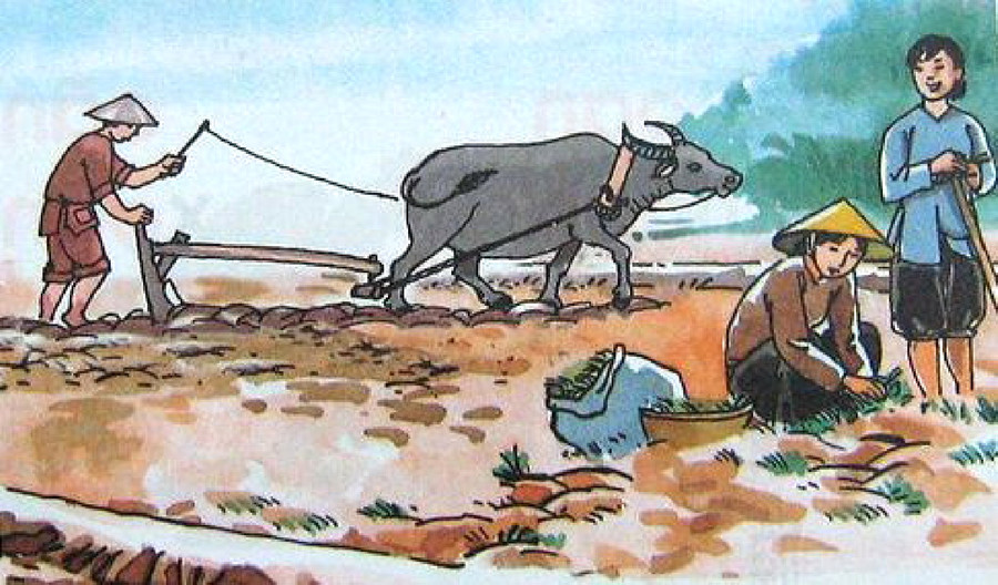 Và đây là cảnh ngoài đồng với bao màu sắc âm thanh ở một vùng quê Nam Bộ cách nay gần thế kỉ: Mặt trời chen lặn, ếch uệch oạc kêu vang mé hào, trâu no nần đi lần về xóm. Lúa cấy đã giáp đông hết rồi, đám nào chưa bén thì coi vàng khè, đám nào đã nở thì coi xanh mướt. (Phụ nữ Tân văn số 35, trang 30).