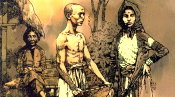 Cái đói và cái chết nắm tay nhau càn qua xóm ngụ cư. Người người lũ lượt bồng bế, dắt díu nhau lên xanh xám như những bóng ma, và nằm ngổn ngang khắp lều chợ. Người chết như ngả rạ. Không buổi sáng nào người trong làng đi chợ, đi làm đồng không gặp ba bốn cái thây nằm còng queo bên đường.