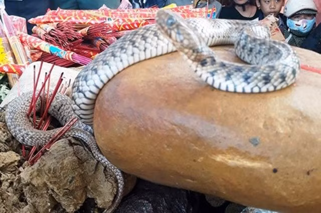 Ông thầy cúng làng La Hà cho rằng hồn bà ăn mày đã nhập vào con rắn và cho kéo điện từ trại ( cồn giữa sông) vào cho bà con đến thắp hương. Từ ngày đầu tiên (24/2/2018) đến ngày 28/2/2018 số tiền cúng thu được đã trên 250 triệu đồng. Có người nhiều người đi xe con tới cúng đến tiền triệu.