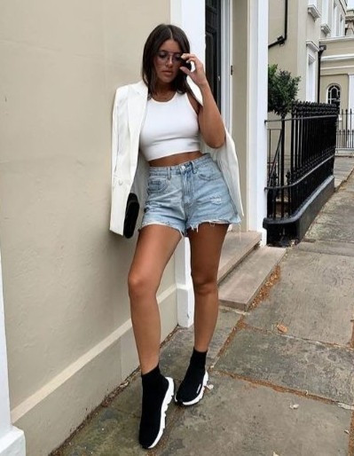 | 3. Tank top cổ cao: Muốn mát mẻ nhưng vẫn "kín cổng cao tường", nhiều cô gái chọn áo ba lỗ cổ cao. Nếu muốn sở hữu vẻ ngoài ngọt ngào, bạn nên mặc nó với cardgian. Blazer kết hợp cùng tank top cổ cao lại mang đến vẻ ngoài thanh lịch. Bên cạnh đó, áo khoác da biker cũng không phải ý tưởng tệ cho diện mạo cá tính. Ảnh: Jolynne Shane, @paulinenavy. |
