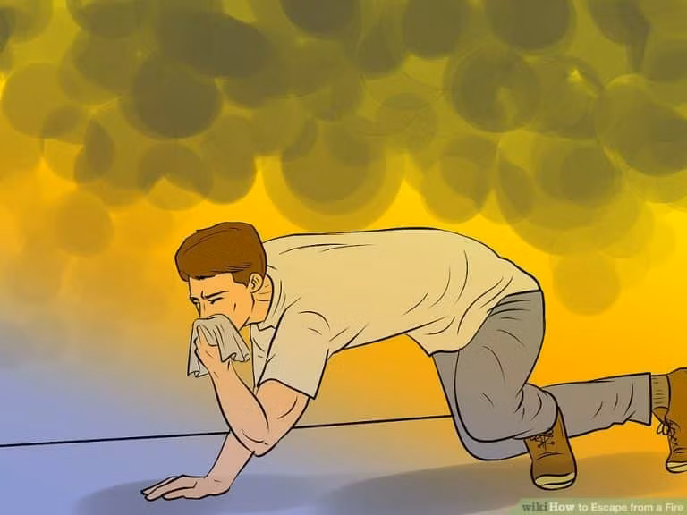 Bò trên sàn nhà nếu có khói vì không khí sạch hơn ở gần sàn nhà, vì thế, để mũi càng thấp càng tốt; hãy nhớ khói rất độc và có thể giết bạn.