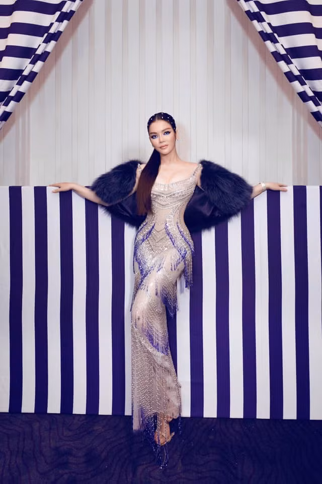 Bộ đầm mà NTK Đỗ Long thiết kế riêng cho Lỳ Nhã Kỳ quá tuyệt vời cho những bữa tiệc sôi động như thế này. Từng chi tiết tua rua như đang nhảy múa, uốn lượt theo từng động tác vũ đạo gợi cảm, uyển chuyển của chủ nhân.
