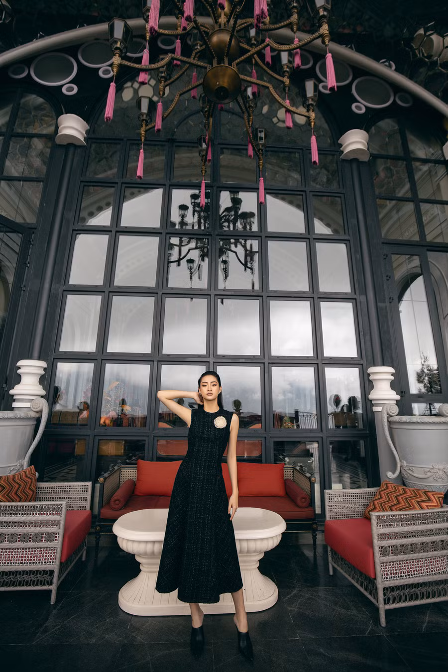 Sắc trắng tao nhã, sắc đen huyền bí, sắc hồng ngọt ngào tinh tế hay đỏ quyền lực khiến người ta mê mẩn, Lương Thùy Linh đều tài tình biến hóa, hòa quyện nhan sắc, thần thái của bản thân với tinh thần của từng mẫu thiết kế.