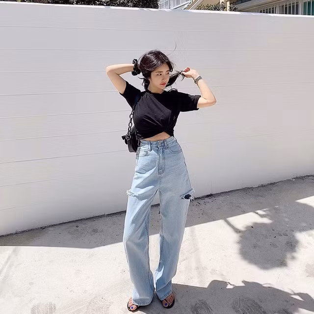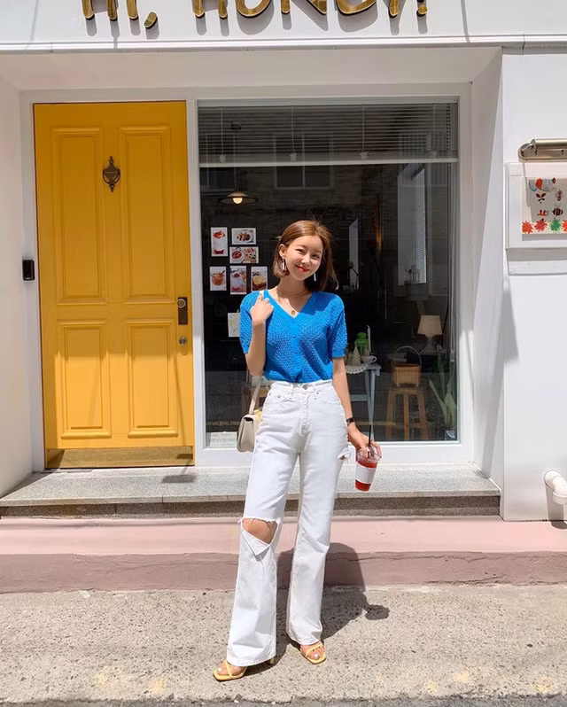 Nếu mê mẩn quần jeans rách thì hè là lúc bạn có thể thoả sức tung tẩy với "em ấy" đây. Những chi tiết rách gối, rách đùi của quần jeans sẽ giúp bạn thêm cool ngầu, cá tính mà không cần mix đồ quá kĩ.