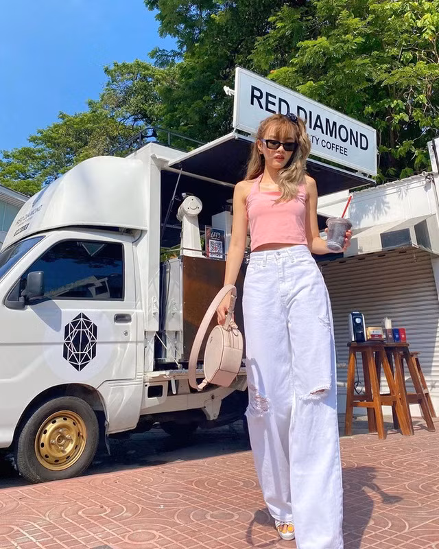 Để diện quần jeans trắng không sợ lộ khuyết điểm thì tốt nhất cứ chọn những dáng quần ống rộng, quần baggy jeans trắng cho năng động, trẻ trung thôi.