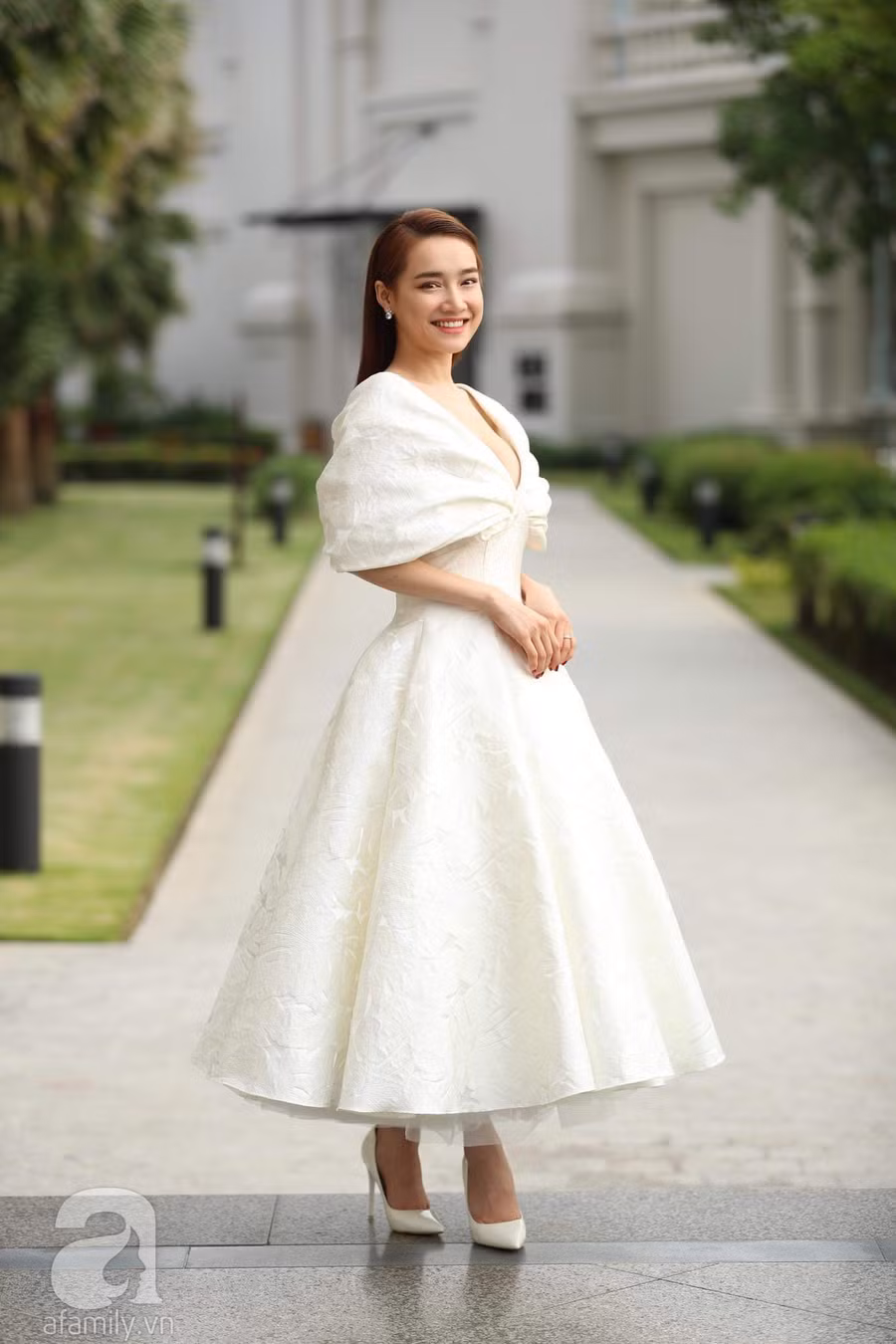 Dự hôn lễ của Đông Nhi – Ông Cao Thắng, kiểu váy được các sao nữ trọng dụng nhất nhì chính là váy trắng cổ chữ V. Đây là sự lựa chọn vô cùng sáng suốt bởi váy cổ chữ V thường mang đến vẻ ngoài thanh lịch, tinh tế cho người diện, đã vậy còn giúp đánh lừa thị giác rằng người diện sở hữu vóc dáng thon gọn hơn thực tế rất nhiều.