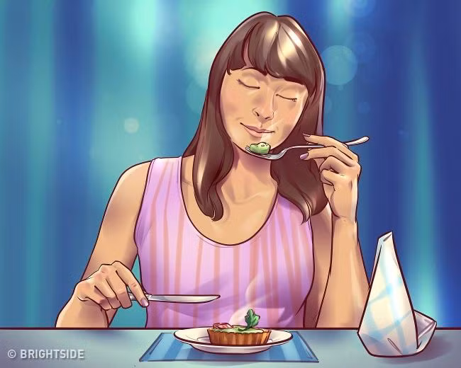 Chỉ có bạn và thức ăn trước mắt. Hãy chú ý đến những gì bạn ăn và cách bạn làm ra nó. Điều này sẽ giúp bạn nếm thức ăn một cách từ tốn và ăn ít hơn.