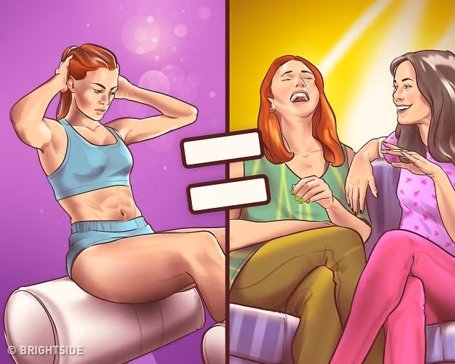Khi chúng ta cười, chúng ta tiêu hao năng lượng tăng hơn 20% so với khi nghỉ ngơi. Bên cạnh đó, cười làm cho cơ bụng của chúng ta hoạt động.