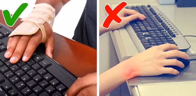 Đeo nẹp giúp bạn giữ cổ tay ở vị trí trung lập. Điều đặc biệt quan trọng nếu bạn muốn bảo vệ cổ tay, hãy đeo một cái nẹp nếu bạn phải gõ bàn phím nhiều hoặc tranh thủ đeo trong khi ngủ vào ban đêm. Khá khó để kiểm soát cổ tay của bạn trong khi ngủ, vì vậy đeo nẹp cổ tay có thể tạo ra sự khác biệt đáng kể.