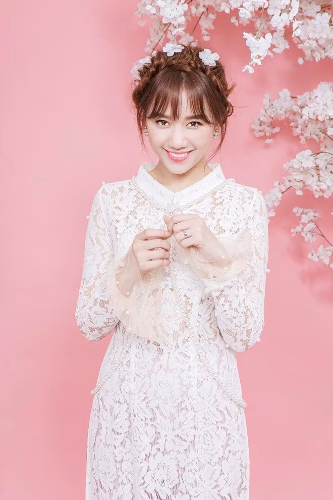 Nội y có chất liệu ren, hằn rõ vân cũng khiến Huyền My kém duyên khi mặc áo dài.