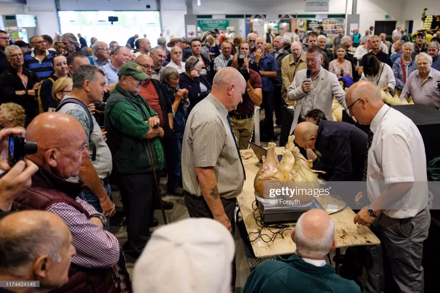 Cuộc thi rau củ khổng lồ được tổ chức từ năm 1995. Theo truyền thống hàng năm, những nhà làm vườn chuyên trồng rau củ khổng lồ từ khắp Vương quốc Anh sẽ quy tụ về triển lãm nông sản mùa Thu Harrogate. (Nguồn: PA Wire).