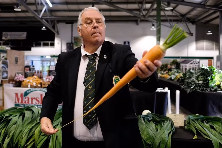 Một củ cà rốt đang được giám khảo kiểm tra chiều dài. (Nguồn: Getty Images).