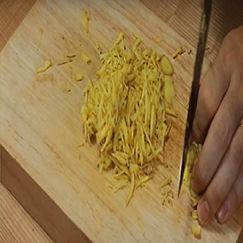 Gừng rửa sạch, không gọt vỏ, thái sợi nhỏ hoặc lát mỏng hoặc bằm nhuyễn.