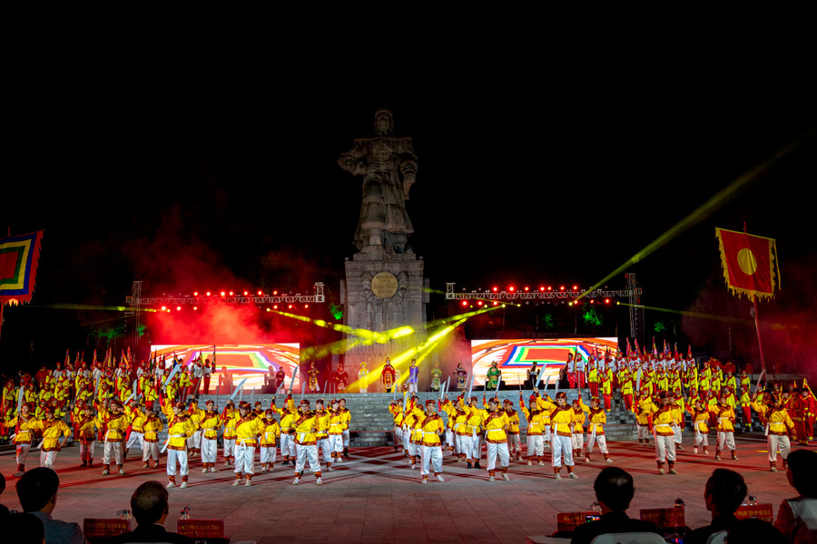 Tối 6/1, UBND TP Huế, tỉnh Thừa Thiên Huế tổ chức chương trình nghệ thuật tái hiện lễ lên ngôi và đại phá quân Thanh của hoàng đế Quang Trung tại khu vực tượng đài hoàng đế Quang Trung - núi Bân lịch sử (phường An Tây, TP Huế).