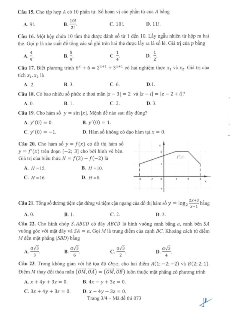 Chương tổ hợp, nhị thức Newton và xác suất có 4 câu (câu 15, câu 16, câu 24 và câu 27) với những câu này thuộc chương trình lớp 11 nhưng câu 15, câu 16 và câu 24 là quen thuộc và đơn giản, còn câu 27 có một chút tư duy nhưng làm được.