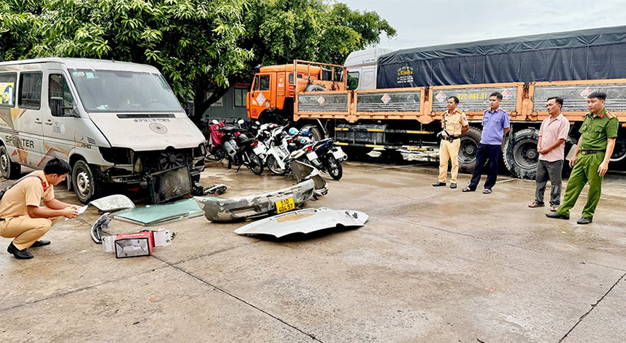 | Cơ quan chức năng tổ chức dựng lại hiện trường vụ tai nạn. (Ảnh: Tiến Tầm) |