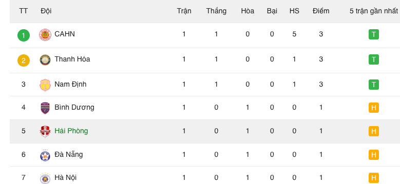 Khép lại vòng 1 giải quốc nội bóng đá Việt Nam, tổng cộng các đội đã ghi được 12 bàn thắng, trung bình 1,7 bàn mỗi trận.