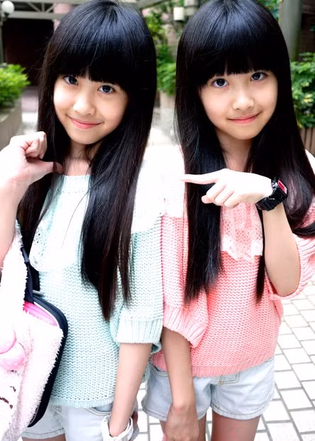 Các cặp bé gái cũng dễ thương không kém. Những chiếc váy đẹp, giống nhau