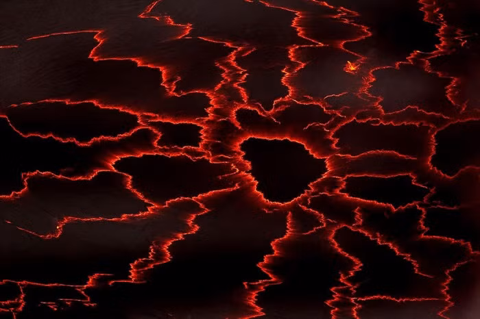 Hình ảnh cận cảnh hồ dung nham với những dòng nham thạch đỏ rực đáng sợ