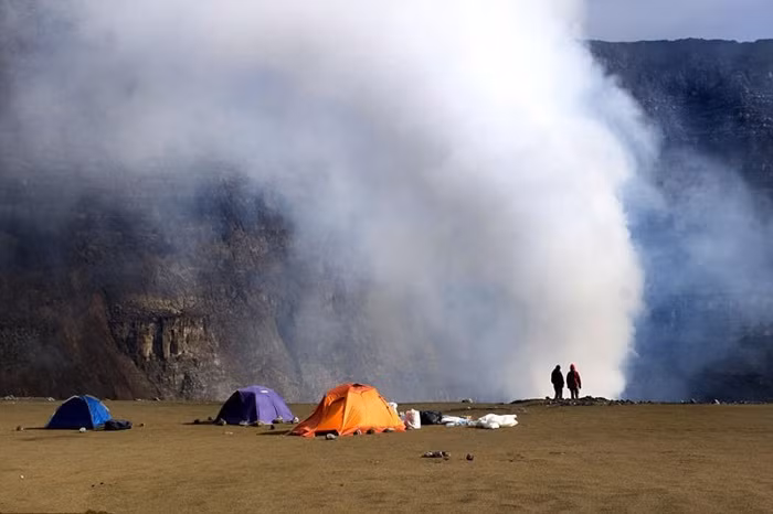 Francesco Pandolfo và đồng nghiệp đã dựng lều bên núi lửa để theo dõi mọi diễn biến, ghi lại các thông số