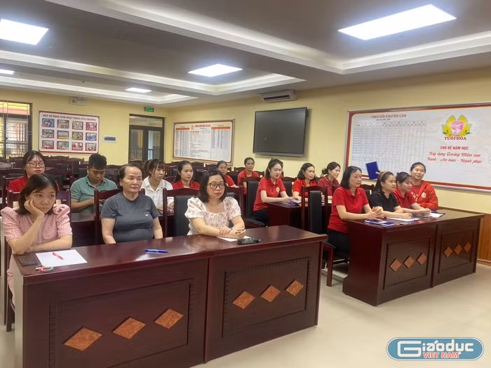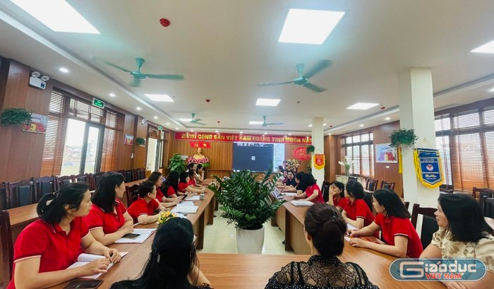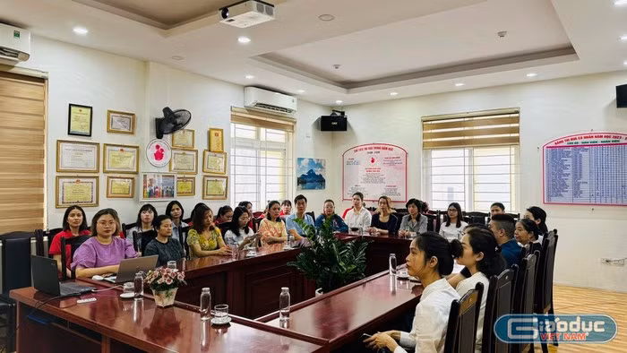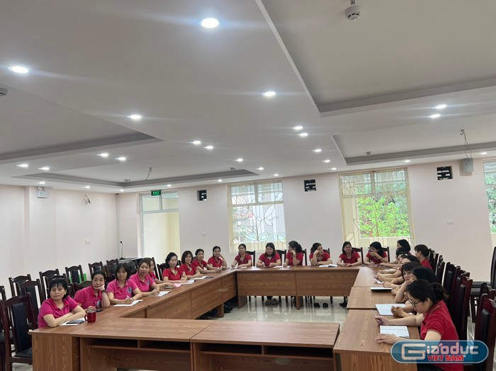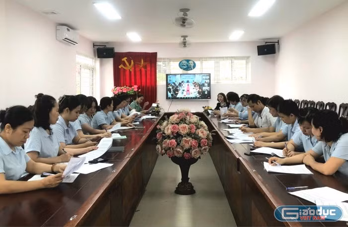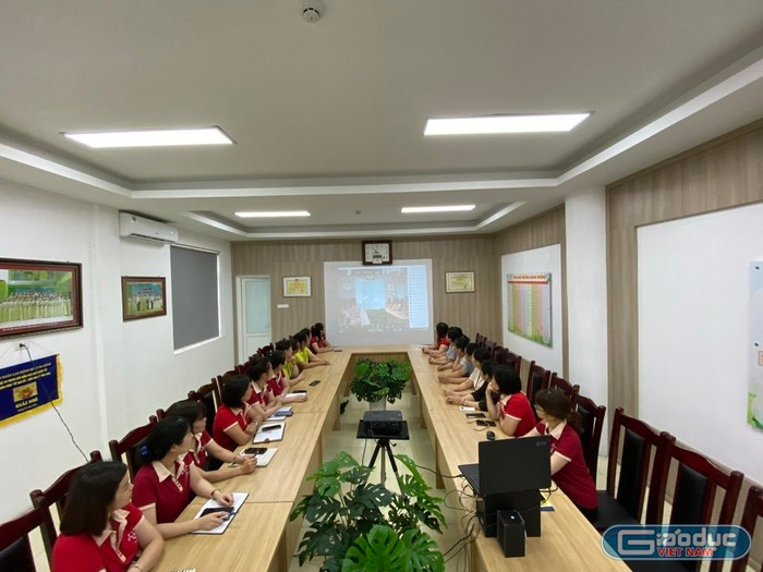 Thầy cô giáo dự trực tuyến tại điểm cầu.