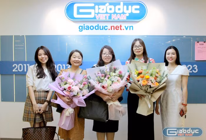 Các chuyên gia khách mời chụp ảnh lưu niệm cùng cán bộ Tạp chí điện tử Giáo dục Việt Nam. Ảnh: Mạnh Đoàn