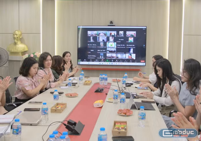 Gần 600 cán bộ quản lý, giáo viên, phụ huynh học sinh,... tại 96 điểm cầu trực tuyến cùng tham dự hội thảo. Ảnh: Mạnh Đoàn