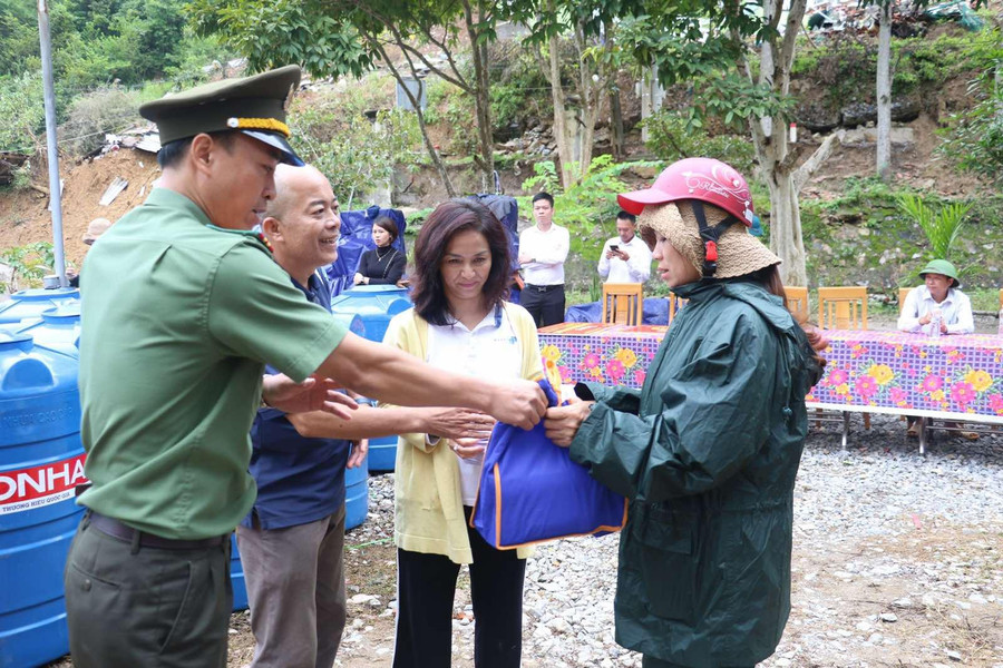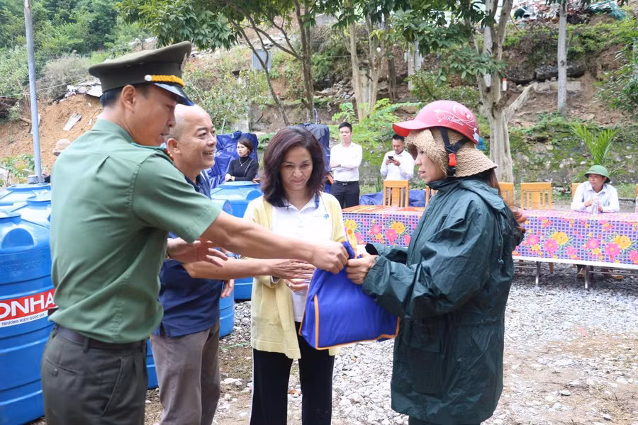 | Đại diện Tập đoàn Masan động viên, trao tặng nhiều phần quà thiết yếu để hỗ trợ người dân vùng chịu thiệt hại nặng nhất của Nghệ An. |