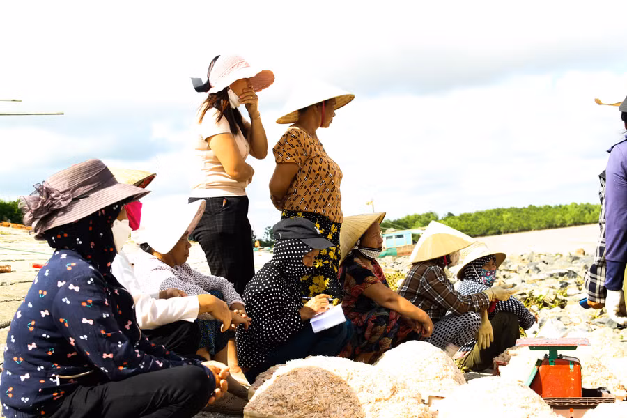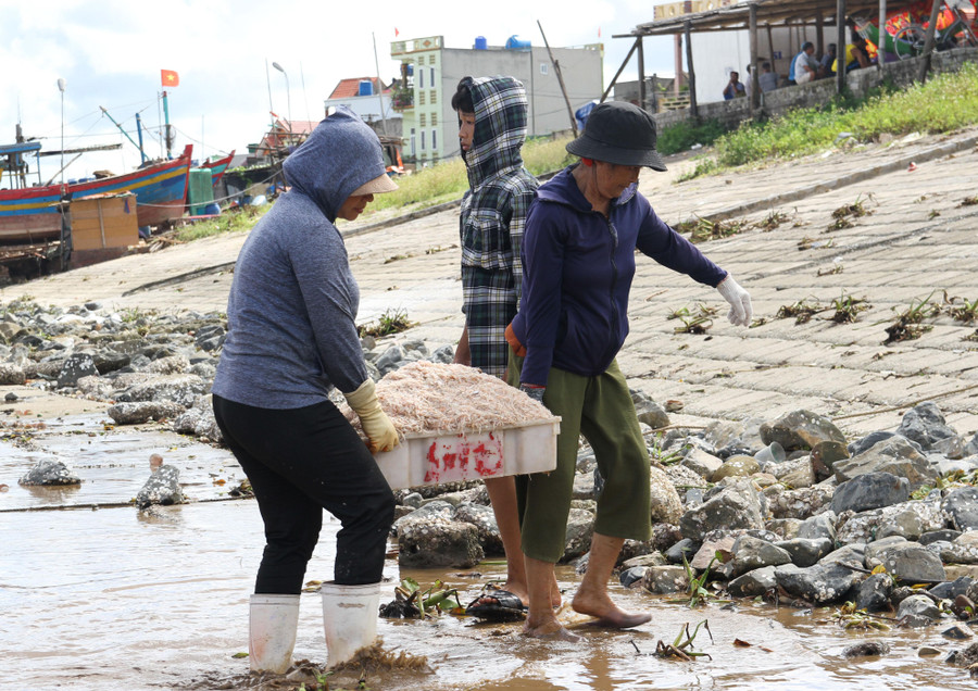 | Hàng hóa sau mỗi chuyến đánh bắt sẽ được đưa lên bờ sau đó bán trực tiếp cho thương lái đến thu mua và vận chuyển đến các địa phương để tiêu thụ. Một ngư dân cho hay, mỗi chuyến đi đều "được mùa" nhưng giá bán cho thương lái lại giảm so với những năm trước đó. |
