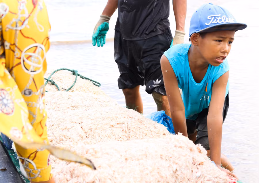 | Cứ thời gian được nghỉ hè, em Trần Văn Hợp (SN 2011) lại cùng người thân tham gia đánh bắt hải sản trên biển. Theo Hợp, nghề đi biển có khó khăn, vất vả nhưng cũng có nhiều thú vị. |