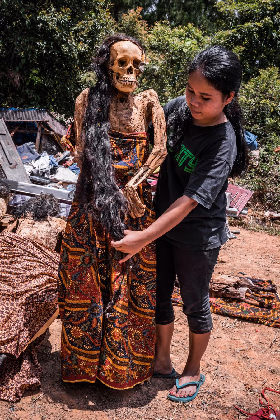 Trong một nghi lễ được gọi là Ma"nene - có nghĩa là "chăm sóc tổ tiên" diễn ra vào tháng 8, người chết sẽ được đưa lên khỏi mộ để vệ sinh sạch sẽ. Thậm chí, họ còn được mặc quần áo mới và đưa xuống làng để về thăm nhà cũ.