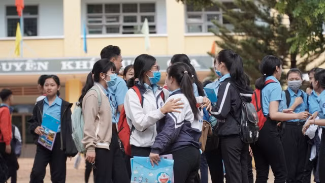 Bước ra khỏi phòng thi ở ngày thi cuối cùng các sĩ ở Tây Nguyên tử thở phào nhẹ nhõm, nở nụ cười rạng rỡ khi kết thúc kì thi quan trọng trong cuộc đời học sinh.