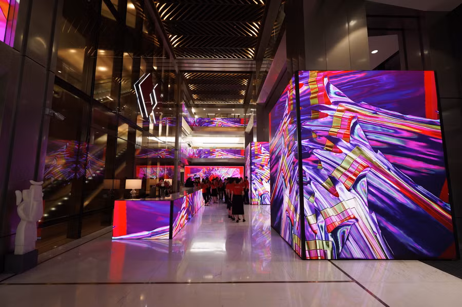 Điểm nhấn của lễ khai trương hai tòa nhà Hội sở Techcombank là triển lãm hiệu ứng nghệ thuật số đẳng cấp, tỏa rạng dấu ấn di sản văn hóa Việt Nam. Tại tòa nhà Techcombank Hà Nội, bộ sưu tập các tác phẩm nghệ thuật số có sự kết hợp hài hòa giữa hành trình Di sản & Tương lai, vốn là ý tưởng được thể hiện xuyên suốt trong thiết kế tòa nhà. Tại tòa nhà Techcombank Sài Gòn, triển lãm kết nối “Kiến trúc – Thiên nhiên – Con người” với các dòng chảy ánh sáng thể hiện tinh thần “năng động và chuyển động không ngừng” của thành phố. Đây cũng là hai triển lãm nghệ thuật sắp đặt kỹ thuật số lớn nhất từng được tổ chức tại cùng một không gian tại Việt Nam.