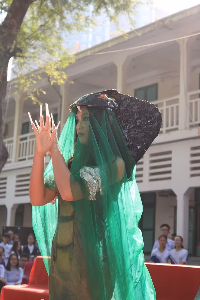 Với ý tưởng sáng tạo, các em học sinh đã tạo ra bộ trang phục đầy ấn tượng từ những tờ giấy màu, bịch ni lông, bìa giấy... đã qua sử dụng.. Bên cạnh trang phục là những bước chân đầy tự tin trình diễn trên sân khấu trường khiến các bạn cùng trang lứa trầm trồ ngợi khen.