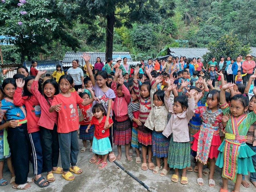| Niềm hạnh phúc của những đứa trẻ ở Háng Sua khi đón nhận chương trình. |