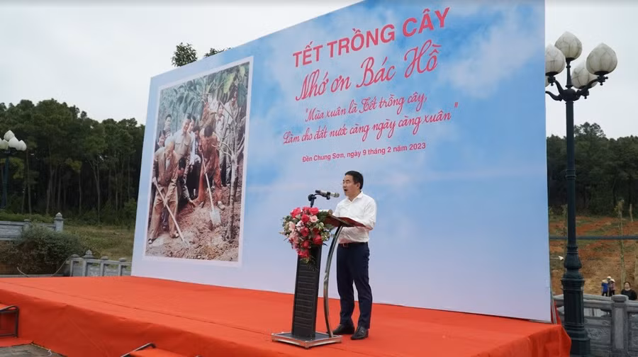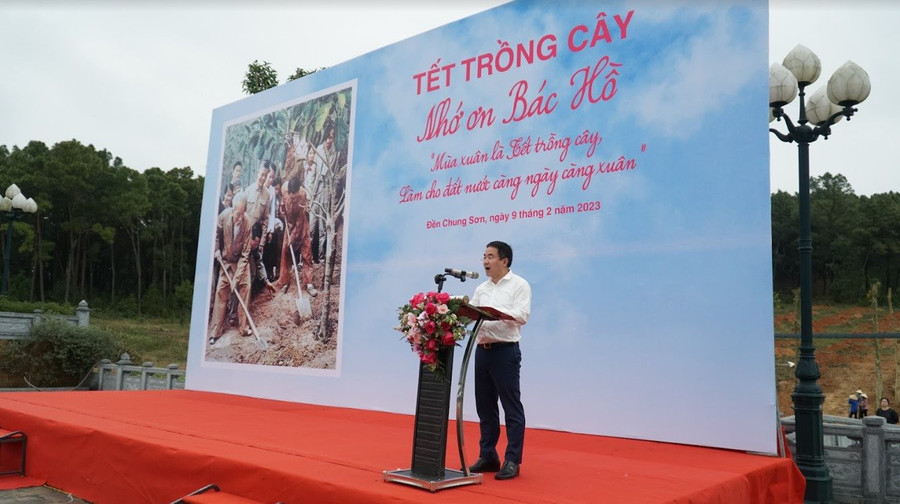 Tầm nhìn sâu sắc, quan điểm tiến bộ về thiên nhiên của Bác Hồ ngày càng trở nên ý nghĩa trong bối cảnh biến đổi khí hậu hiện nay. Luôn khắc ghi lời dạy của Chủ tịch Hồ Chí Minh, nhân dân tỉnh Nghệ An luôn nhiệt tình hưởng ứng các hoạt động trồng cây gây rừng. Nhân dịp Xuân Quý Mão 2023, Lễ phát động “Tết trồng cây nhớ ơn Bác Hồ” tại Đền Chung Sơn đã được tổ chức với sự tham gia của các đồng chí: Thái Thanh Quý - Ủy viên Ban Chấp hành Trung ương Đảng, Bí thư Tỉnh ủy, Trưởng đoàn ĐBQH, Chủ tịch HĐND tỉnh; Hoàng Nghĩa Hiếu - Phó Bí thư Tỉnh ủy, các đồng chí trong Ban Thường vụ Tỉnh ủy, lãnh đạo các huyện Nam Đàn và Hưng Nguyên; bà Thái Hương - Tổng Giám đốc Ngân hàng Thương mại Cổ phần Bắc Á - Chủ tịch Hội đồng Chiến lược Tập đoàn TH, Trưởng ban quản lý Đền Chung Sơn, Anh hùng Lao động thời kỳ đổi mới; lãnh đạo các Sở Ban, ngành, đoàn thể cùng đông đảo quần chúng nhân dân Nam Đàn, Hưng Nguyên, tỉnh Nghệ An.
