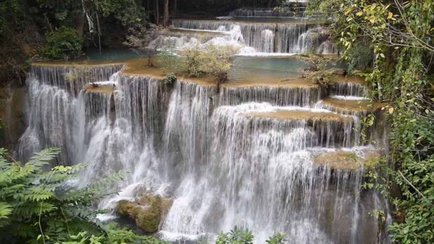 Là một trong những thác nước tuyệt đẹp của xứ Chùa vàng, Huay Mae Khanim mang một vẻ đẹp siêu thực như trong truyện cổ tích, với những dòng nước trắng xóa như mây khói tan ra giữa không trung.
