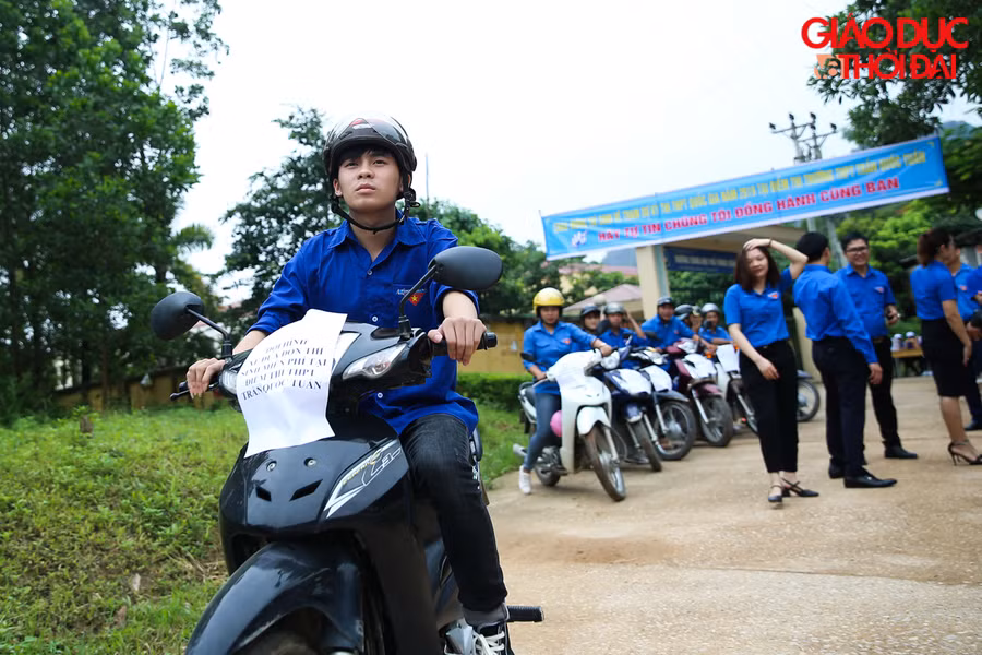 Anh Triệu Văn Minh, Bí thư đoàn trường THPT Trần Quốc Tuấn cho biết, do điều kiện địa lý của trường khá sâu so với các điểm thi, điểm trường khác, nên đã 3 năm nay đội” siêu xe ôm” áo xanh đã được thành lập ra vào mỗi kỳ thi để đảm bảo việc di chuyển của các thí sinh đến điểm thi, không một thí sinh nào muộn thi.