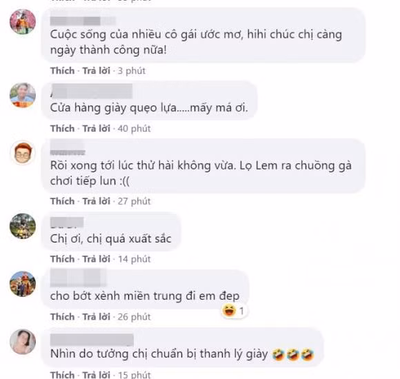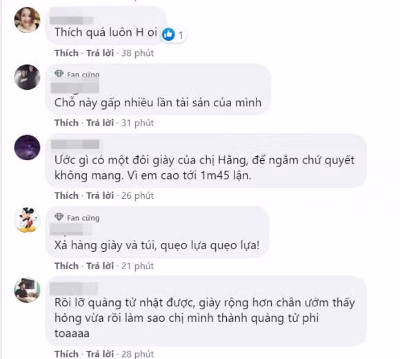 Nhiều cư dân mạng cũng ao ước có tủ đồ như siêu mẫu Thanh Hằng: "Lọ lem này không có gì ngoài tiền nó vậy đó", "Hơn cả shop giày", "Đập vô mắt đầu tiên là đôi Balenciaga. Kế đến là đôi Gucci", "Nhìn đã con mắt quá";