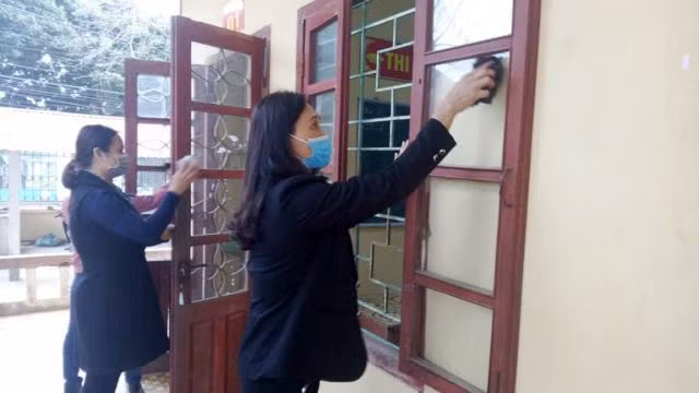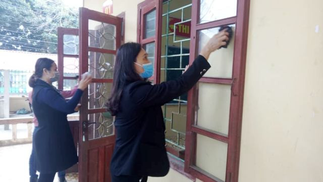 Tại huyện miền núi Cẩm Thủy, từ ngày 13/2, các trường học đã tổ chức cho giáo viên tập trung don dẹp vệ sinh môi trường, phối hợp với lực lượng Trung tâm Y tế dự phòng huyện phun hóa chất khử khuẩn lần hai...để đón học sinh trở lại lớp vào ngày 17/2 tới đây.