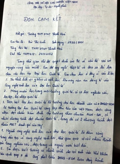 Theo đó, ngày 14/8, trường THPT Dân tộc Nội trú tỉnh Thanh Hóa có công văn số 115/THPT-DTNT về việc đề nghị sửa chữa sai sót thông tin nguyện vọng đăng ký xét tuyển đại học năm 2019 của thí sinh Bùi Thị Linh đến trường Đại học Y Dược TP. Hồ Chí Minh để xem xét giúp đỡ thí sinh được nhập học theo đúng nguyện vọng tại trường.