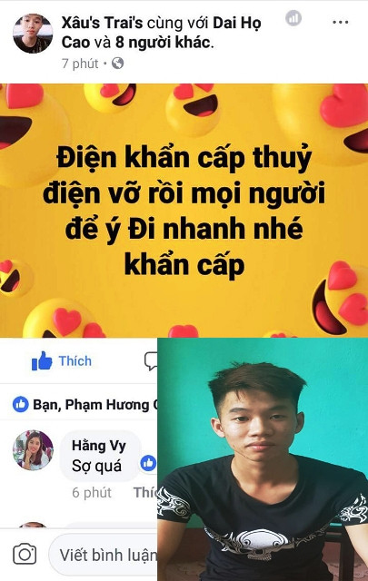 | Thông tin vỡ đập thủy điện Trung Sơn được Hà Văn Mười và Lữ Chính Quyền tung lên mang facebook. |