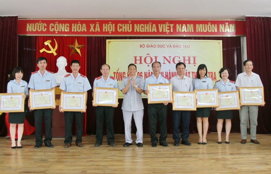 Tại hội nghị, Vụ Thi đua khen thưởng, Thanh tra Bộ GD&ĐT đã tặng bằng khen của Bộ trưởng Bộ GD&ĐT cho 14 tập thể 34 các nhân đã có thành tích xuất sắc trong công tác triển khai thi hành Luật Thanh tra giai đoạn 2011-2017.