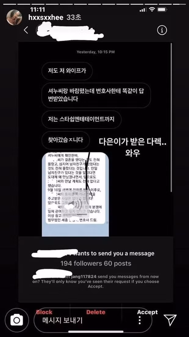 Sau khi công ty thông báo Wonho sẽ rời khỏi MONSTA X, Han Seo Hee còn kiên quyết đòi nợ, trả đũa hộ người tình chuyển giới bằng cách tung đoạn tin nhắn tố Shownu cặp kè với một người phụ nữ đã có chồng.